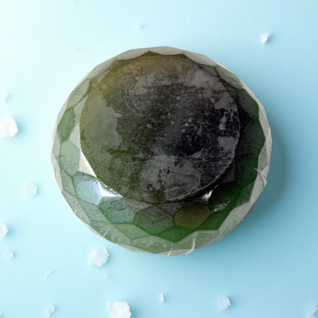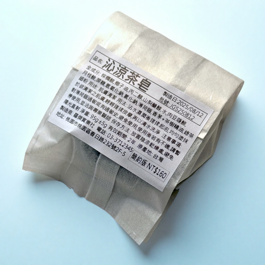 注意: 嬰幼兒或對薄荷腦過敏或有過敏史,請避免使用,皂體中深色花紋為綠茶細粉渲染。